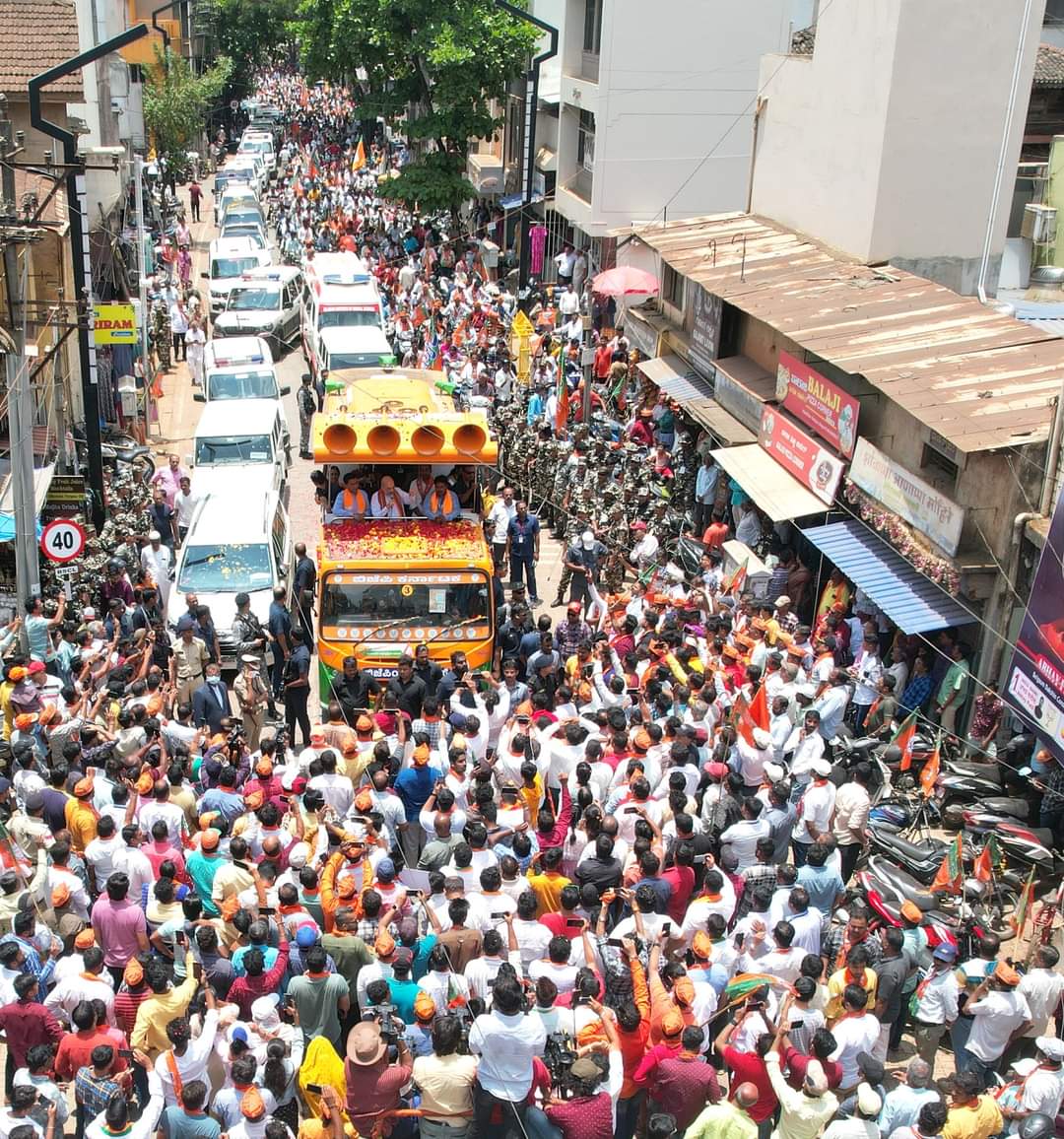 ರೋಡ್ ಶೋದಲ್ಲಿ ಪಾಲ್ಗೊಂಡ ಅಪಾರ ಜನಸ್ತೋಮ ಬಿಜೆಪಿ, ಅಮಿತ್ ಶಾ, ಅಭಯ ಪಾಟೀಲ ಪರ ಘೋಷಣೆ ಕೂಗಿದರು. ಗಲ್ಲಿ ಗಲ್ಲಿಗಳಲ್ಲಿ ಹೂಮಳೆಗೈದು ಅಮಿತ್ ಶಾರನ್ನು ಪ್ರೀತಿಯಿಂದ ಬರಮಾಡಿಕೊಂಡರು. ನಿನ್ನೆಯಷ್ಟೇ ಬೈಕ್ ರ್ಯಾಲಿ ನಿಗದಿಯಾಗಿತ್ತು. ಒಂದೇ ರಾತ್ರಿಯಲ್ಲಿ 25 ಸಾವಿರ ಬೈಕ್ ಗಳ 50 ಮೇಲೆ ಸಾವಿರ ಕಾರ್ಯಕರ್ತರು ಪಾಲ್ಗೊಂಡು ಶಿಸ್ತುಬದ್ಧ ರೋಡ್ ಶೋ ಮಾಡುವ ಮೂಲಕ ತಾವು ವಿಭಿನ್ನ, ವಿಶೇಷ ಅನ್ನುವುದನ್ನು ಅಭಯ ಪಾಟೀಲ ಮತ್ತೊಮ್ಮೆ ಸಾಬೀತುಪಡಿಸಿದರು. ಬೆಳಗಾವಿಯ ವಡಗಾಂವದಿಂದ ಆರಂಭವಾದ ರೋಡ್ ಶೋ 4 ಕಿಮೀವರೆಗೆ ಕ್ರಮಿಸಿತು. ಅಮಿತ್ ಶಾಗೆ ಗೋವಾ ಸಿಎಂ ಪ್ರಮೋದ ಸಾವಂತ್ ಕೂಡ ಸಾಥ್ ನೀಡಿದರು.
