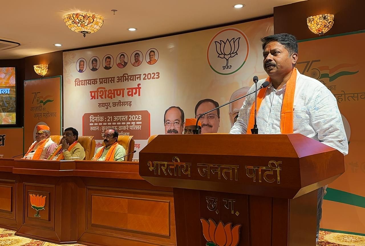 ಛತ್ತೀಸಗಡ- ದೇಶದಲ್ಲಿ ಪಂಚರಾಜ್ಯಗಳ ವಿಧಾನಸಭೆ ನಡೆಯಲಿದ್ದು ಪಂಚರಾಜ್ಯಗಳಲ್ಲಿ ಗೆಲುವು ಸಾಧಿಸಲು ಬಿಜೆಪಿ ತಾಲೀಮು ಶುರುವಾಗಿದೆ.ಈ ಕುರಿತು ಛತ್ತೀಸಗಡ ರಾಯಾಪೂರದಲ್ಲಿ ಪಂಚರಾಜ್ಯಗಳ ಆಯ್ದ ಶಾಸಕರ ಮಹತ್ವದ ಅಭ್ಯಾಸ ವರ್ಗ ನಡೆಯಿತು ಈ ಅಭ್ಯಾಸ ವರ್ಗದಲ್ಲಿ ಬೆಳಗಾವಿ ದಕ್ಷಿಣ ಮತ್ಷೇತ್ರದ ಶಾಸಕ ಅಭಯ ಪಾಟೀಲ ಚುನಾವಣೆಯಲ್ಲಿ ಅನುಸರಿಸಬೇಕಾದ ತಂತ್ರಗಾರಿಕೆಯ ಬಗ್ಗೆ ಪಂಚರಾಜ್ಯಗಳ ಶಾಸಕರಿಗೆ ವಿಶೇಷ ಉಪನ್ಯಾಸ ಮಾಡಿದರು.