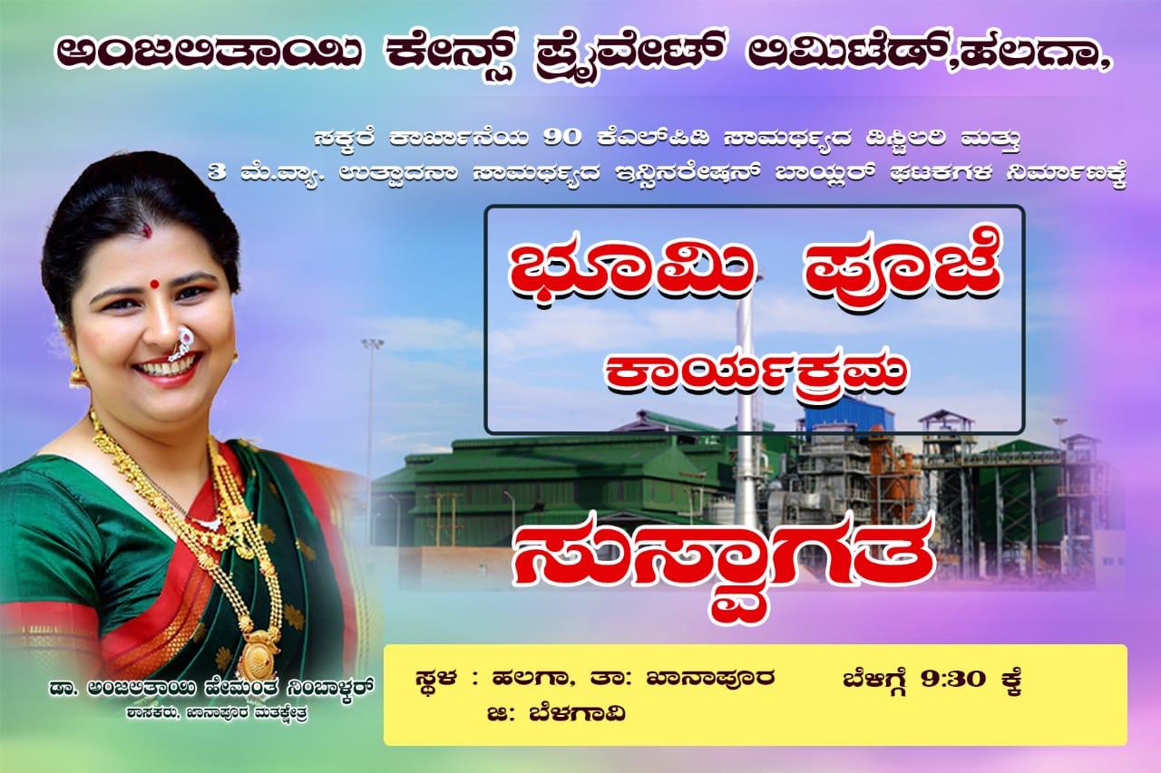 ಖಾನಾಪೂರ ತಾಲ್ಲೂಕಿನ ಹಲಸಿ ಗ್ರಾಮದ ಸಮೀಪದಲ್ಲಿರುವ ಹಲಗಾ ಗ್ರಾಮದಲ್ಲಿ ಶಾಸಕಿ ಅಂಜಲಿ ನಿಂಬಾಳ್ಕರ್ ಅವರು ಅಂಜಲಿತಾಯಿ ಕೇನ್ ಪ್ರೈವೇಟ್ ಲಿಮಿಟೆಡ್ ಹೆಸರಿನಲ್ಲಿ ಹೊಸ ಸಕ್ಕರೆ ಕಾರ್ಖಾನೆ ನಿರ್ಮಾಣಕ್ಕೆ ಇವತ್ತು ಭೂಮಿ ಪೂಜೆ ನೆರವೇರಿಸಿ ಕಾಮಗಾರಿಗೆ ಚಾಲನೆ ನೀಡಿದ್ರು…