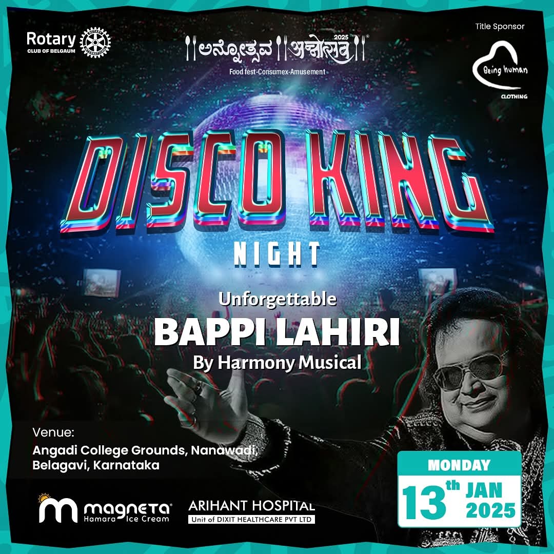 ಜನೇವರಿ 3 ರಿಂದ 14 ರವರೆಗೆ ಬೆಳಗಾವಿಯ ಸಾವಗಾಂವ ರಸ್ತೆಯಲ್ಲಿರುವ ಅಂಗಡಿ ಕಾಲೇಜು ಹತ್ತಿರ ಅನ್ನೋತ್ಸವ ನಡೆಯುತ್ತಿದೆ. ಪ್ರತಿದಿನ ಸಂಜೆ ಸಂಗೀತ ಕಾರ್ಯಕ್ರಮ ಸೇರಿದಂತೆ ವಿವಿಧ ಸಂಸ್ಕೃತಿಕ ಕಾರ್ಯಕ್ರಮಗಳು ನಡೆಯುತ್ತಿವೆ ಇಂದು ಸೋಮವಾರ ದಿ.13 ಈ ದಿನ ಸಂಜೆ ಅನ್ನೋತ್ಸದಲ್ಲಿ ಡಿಸ್ಕೋ ಕಿಂಗ್ ಬಪ್ಪಿ ಲಹರಿ ಅವರನ್ನು ಸ್ಮರಿಸುವ ಸಂಗೀತ ಕಾರ್ಯಕ್ರಮ ಬೆಳಗಾವಿಯ ಹಾರ್ಮೋನಿ ಮ್ಯುಸಿಕ ತಂಡದವರು ನಡೆಸ