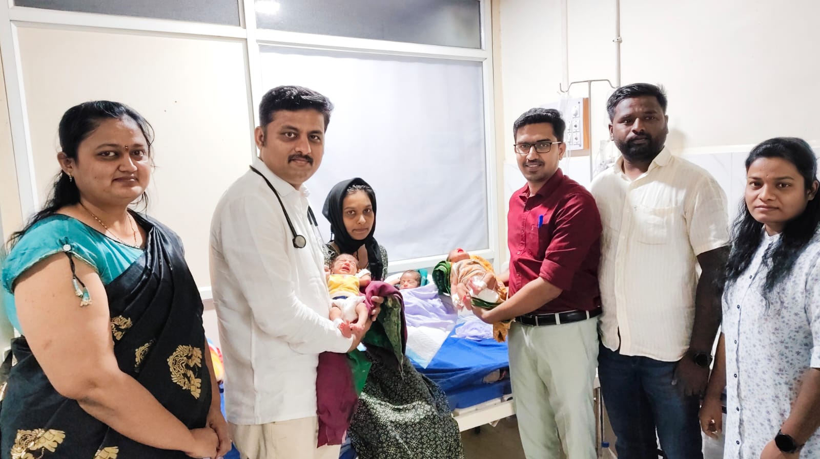 ರಾಯಬಾಗ ತಾಲೂಕಿನ ಕಂಕಣವಾಡಿ ಗ್ರಾಮದ ನಿವಾಸಿ ಪೂಜಾ ಕಾಲತಿಪ್ಪಿ ಎಂಬುವರು ಮೂರು ಮಕ್ಕಳಿಗೆ ಜನ್ಮ ನೀಡಿದ್ದಾರೆ. ಎರಡು ಗಂಡು ಒಂದು ಹೆಣ್ಣು ಈ ಮೂರು ಮಕ್ಕಳ ಆರೋಗ್ಯ ಉತ್ತಮವಾಗಿದೆ ಎಂದು ಅವುಗಳನ್ನು ಪರೀಕ್ಷಿಸಿದ ಮಕ್ಕಳು ತಜ್ಞ ಮಹಾಂತೇಶ ಕಡಾಡಿ ತಿಳಿಸಿದ್ದಾರೆ. ಆಸ್ಪತ್ರೆಯ ವೈದ್ಯರಾದ ಮಯೂರಿ ಕಡಾಡಿ, ವಿಜಯ್ ಬೆನಕಟ್ಟಿ, ಬಸವರಾಜ್ ಹೊನ್ನಾ ಹಾಗೂ ಆಸ್ಪತ್ರೆ ಸಿಬ್ಬಂದಿಗಳು ಇದ್ದರು.