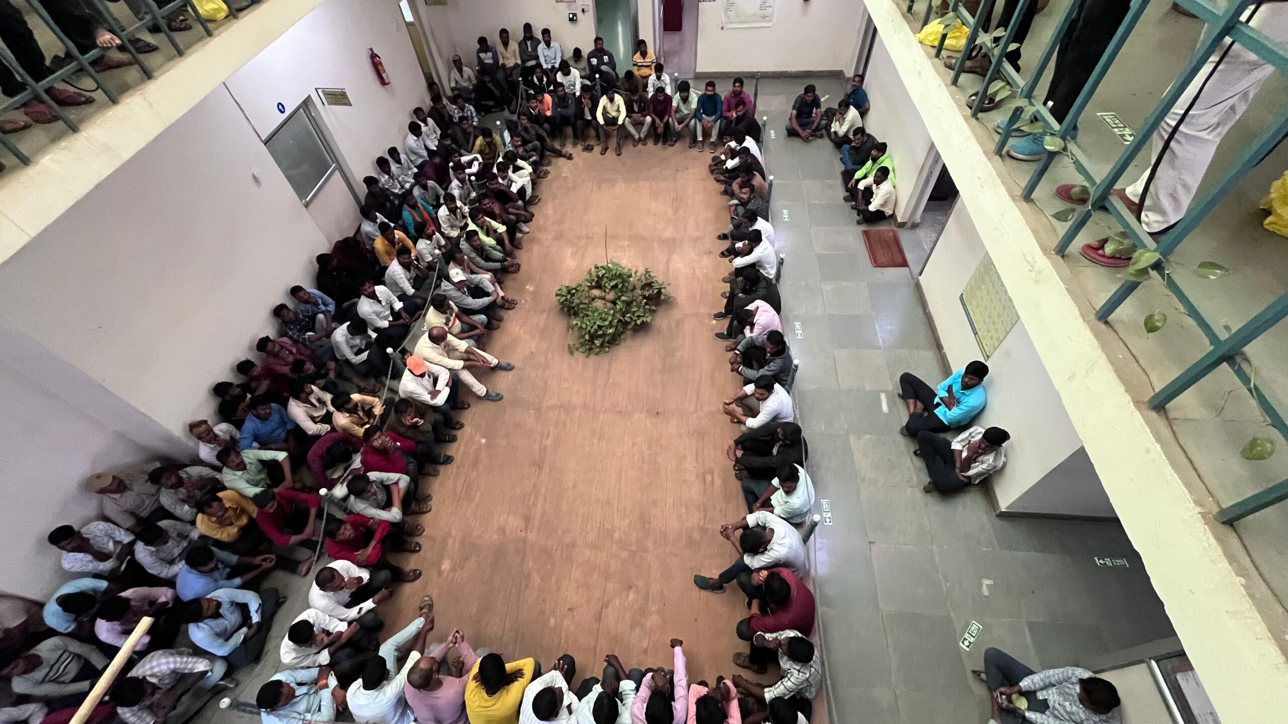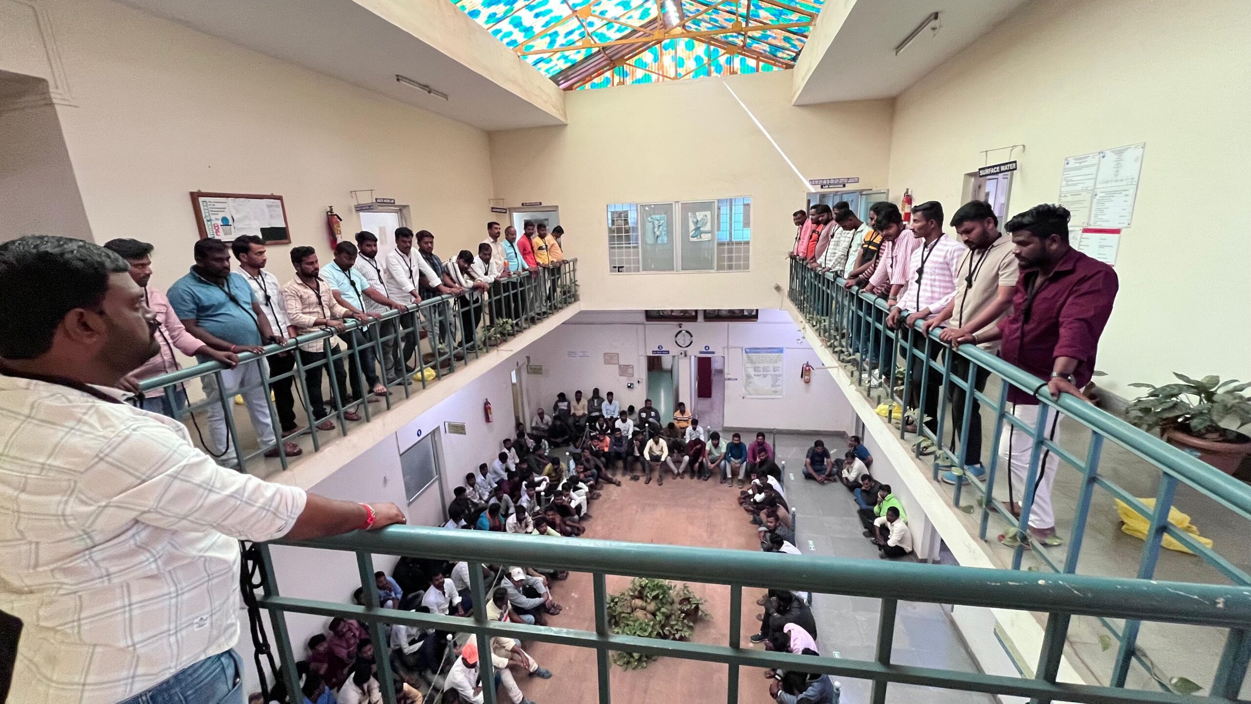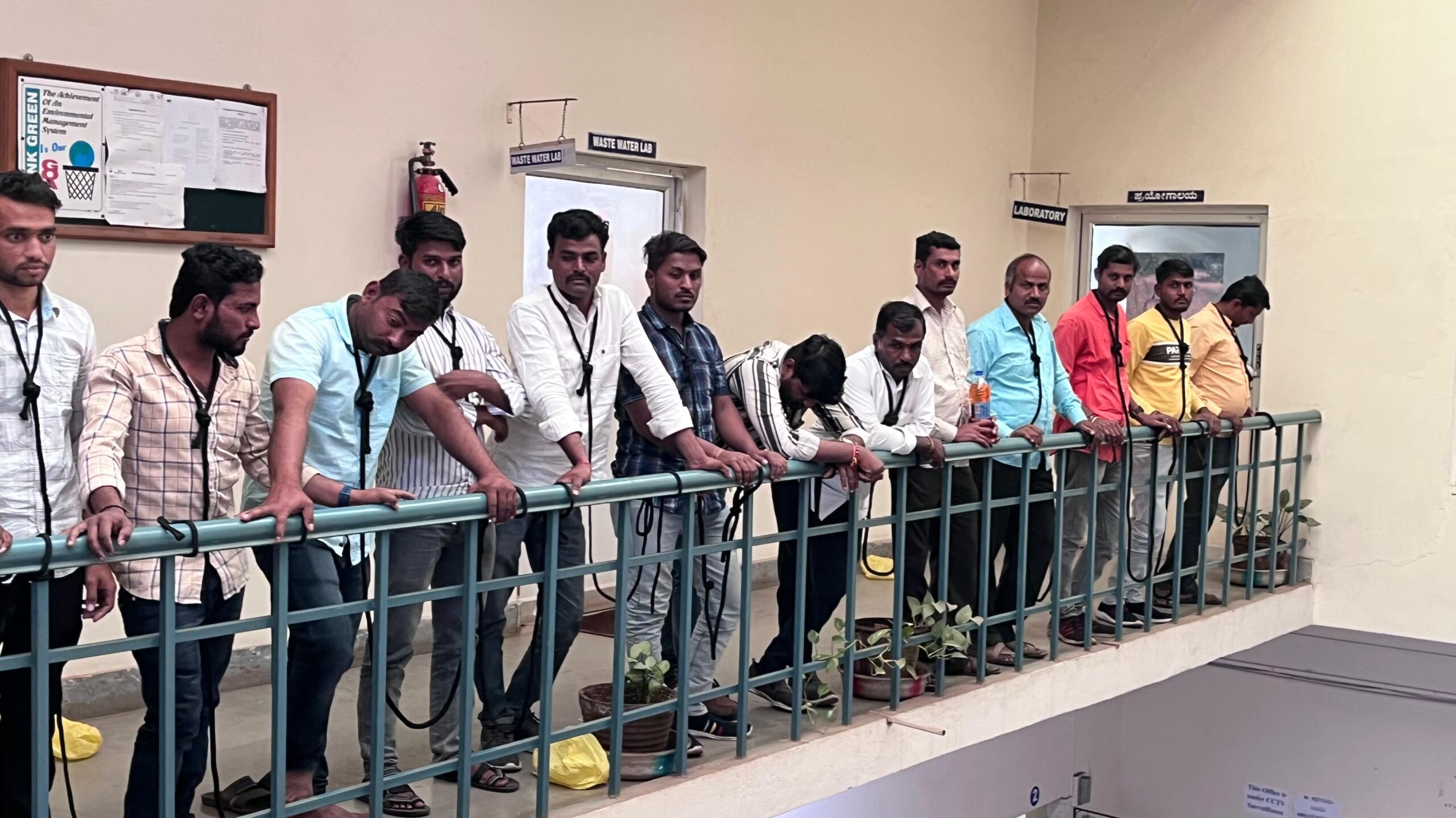 ಬೆಳಗಾವಿ ಆಟೋ ನಗರದಲ್ಲಿ ಪರಿಸರ ನಿಯಂತ್ರಣ ಮಂಡಳಿ ಕಚೇರಿಗೆ ಮುತ್ತಿಗೆ ಹಾಕಿರುವ ಕಾರ್ಮಿಕರು