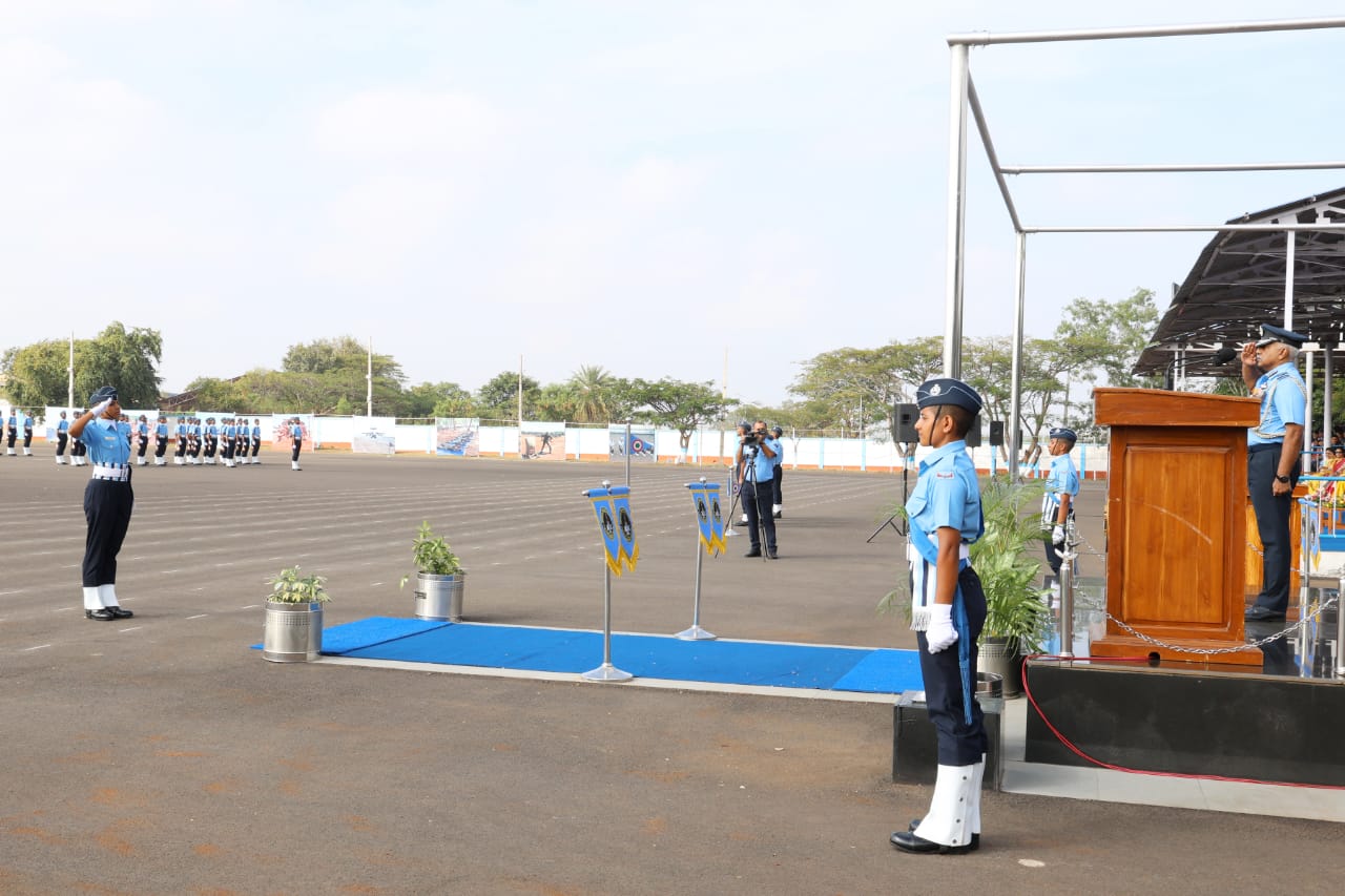 ಆಕರ್ಷಕ ಪಥಸಂಚಲನದ ಮೂಲಕ ಗಮನ ಸೆಳೆದ ಪ್ರಶಿಕ್ಷಣಾರ್ಥಿಗಳು.ಏರ್ ಮಾರ್ಷಲ್ ರಾಧಾಕೃಷ್ಣನ್ ರದ್ದೀಶ್ ಅವರಿಂದ ಗೌರವ ಸ್ವೀಕಾರ ಮಾಡಿದ್ರು.