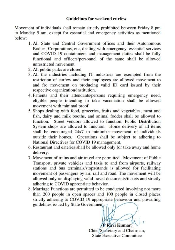 Government has extended night curfew for two more weeks. Weekend curfew will be implemented for two weeks.