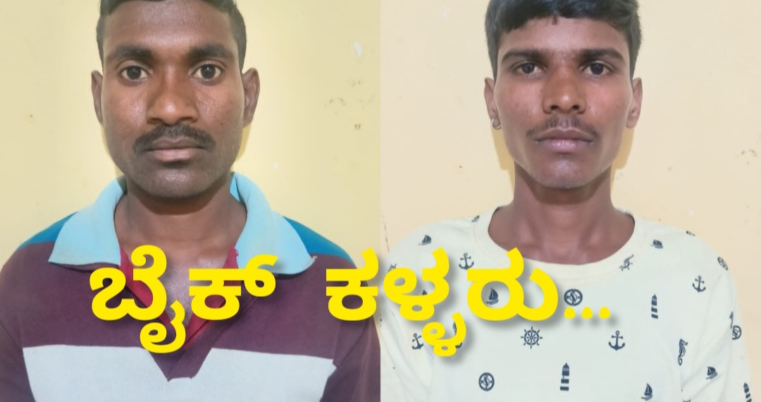 ಮನೆಯ ಮಂದೆ ನಿಲ್ಲಿಸಿದ ಬೈಕ್ ಗಳನ್ನು ಹಲವಾರು ದಿನಗಳಿಂದ ಕಳವು ಮಾಡುತ್ತಿದ್ದ ಇಬ್ಬರು ಕಳ್ಳರು ಖಾಕಿ ಬಲೆಗೆ ಬಿದ್ದಿದ್ದಾರೆ.