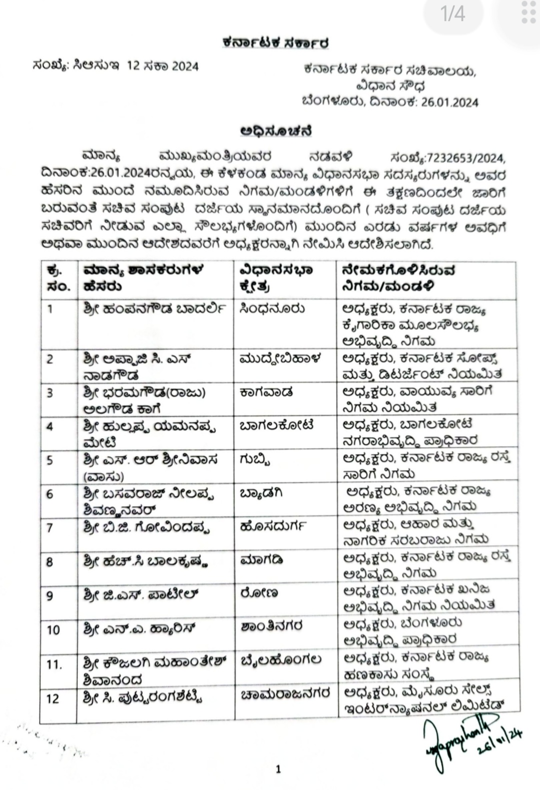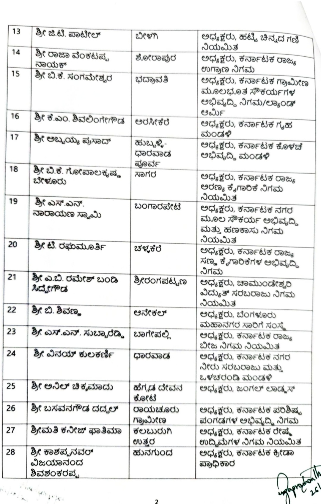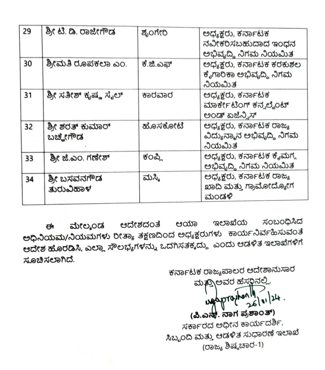 ಕಾಗವಾಡ ಶಾಸಕ ರಾಜು ಕಾಗೆ ಅವರಿಗೆ KSRTC ನಿಗಮ ಬೈಲಹೊಂಗಲ ಶಾಸಕ ಮಹಾಂತೇಶ ಕೌಜಲಗಿ ಅವರಿಗೆ ಹಣಕಾಸು ನಿಗಮ ನೀಡಲಾಗಿದ್ದು ಮೊದಲ ಪಟ್ಟಿಯಲ್ಲಿ ಕೇವಲ ಶಾಸಕರಿಗೆ ಮಾತ್ರ ನಿಗಮಗಳನ್ನು ನೀಡಲಾಗಿದ್ದು ಕಾಂಗ್ರೆಸ್ ಸರ್ಕಾರ ಮೊದಲ ಪಟ್ಟಿಯಲ್ಲಿ ಕಾರ್ಯಕರ್ತರಿಗೆ ಪಕ್ಷವನ್ನು ಅಧಿಕಾರಕ್ಕೆ ತರಲು ಶ್ರಮಿಸಿದ ಶ್ರಮಿಕರನ್ನು ಕೈಬಿಟ್ಟಿದೆ.