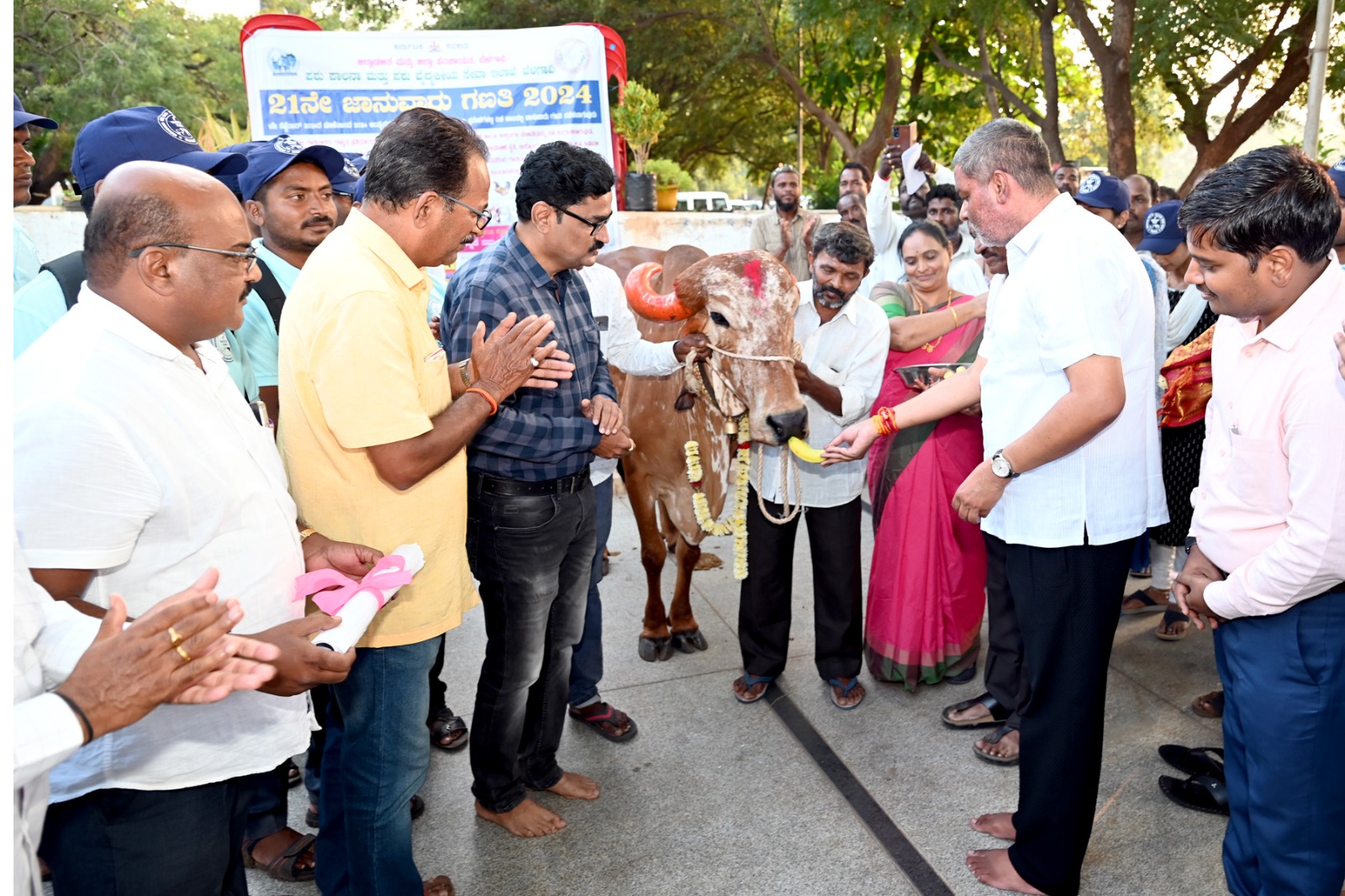 ಶಾಸಕ ಬಾಲಚಂದ್ರ ಜಾರಕಿಹೊಳಿ ಅವರು ಗೋ-ಮಾತೆಗೆ ಪೂಜೆ ಮಾಡುವ ಮೂಲಕ ಜಾನುವಾರು ಗಣತಿ ಕಾರ್ಯಕ್ಕೆ ಚಾಲನೆ ಮಾಡಿದರು.