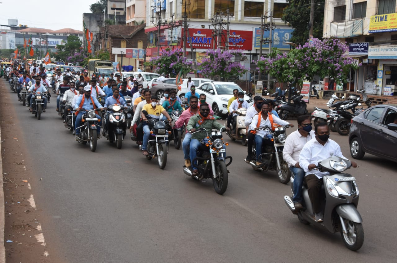 ಗುರುವಾರ ಬೆಳಿಗ್ಗೆ ಮುಖ್ಯಮಂತ್ರಿ ಯಡಿಯೂರಪ್ಪ,ಕೇಂದ್ರ ಸಚಿವ ಪ್ರಲ್ಹಾದ್ ಜೋಶಿ,ಸಚಿವರಾದ ಜಗದೀಶ್ ಶೆಟ್ಟರ್,ಮುರುಗೇಶ್ ನಿರಾಣಿ,ಶ್ರೀಮಂತ ಪಾಟೀಲ,ಉಮೇಶ ಕತ್ತಿ ಶಾಸಕ ಅಭಯ ಪಾಟೀಲ ಸೇರಿದಂತೆ ಇತರ ಬಿಜೆಪಿ ನಾಯಕರು ಛತ್ರಪತಿ ಶಿವಾಜಿ ಮಹಾರಾಜರ ಪ್ರತಿಮೆಗೆ ಗೌರವ ಸಮರ್ಪಿಸಿ ಬಿಜೆಪಿಯ ಬೈಕ್ ರ್ಯಾಲಿಗೆ ಅದ್ದೂರಿ ಚಾಲನೆ ನೀಡಿದರು.