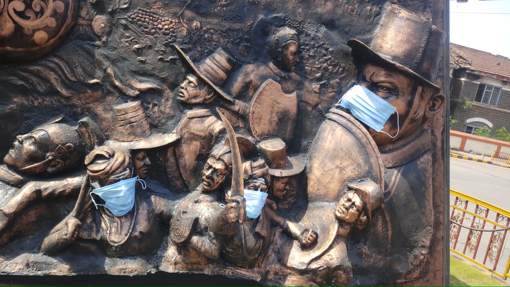 ಬೆಳಗಾವಿಯಲ್ಲಿ ಎಲ್ಲರೂ ಮಾಸ್ಕ್ ಹಾಕಿಕೊಳ್ಳುತ್ತಾರೋ ಗೊತ್ತಿಲ್ಲ,ಆದ್ರೆ ಬೆಳಗಾವಿಯ ಜನ ಚನ್ನಮ್ಮ ವೃತ್ರದಲ್ಲಿರುವ ಚನ್ನಮ್ಮಾಜಿಯ ವೀರ ಸೈನಿಕರ ಪ್ರತಿಮೆಗಳಿಗೂ ಮಾಸ್ಕ ಹಾಕಿ,ಎಲ್ಲಾರೂ ಮಾಸ್ಕ್ ಹಾಕೊಳ್ರಿ ಎನ್ನುವ ಸಂದೇಶ ಸಾರಿದ್ದಾರೆ.