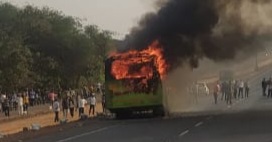 ಬೆಳಗಾವಿ – ಸಂಕೇಶ್ವರ ಹತ್ತಿರದ ಟೋಲ್ ಬಳಿ ಬಸ್ಸಿಗೆ ಬೆಂಕಿ ತಗಲಿ ಬಸ್ಸು ಬೆಂಕಿಗಾಹುತಿಯಾದರೂ ಸಹ ಚಾಲಕ ಮತ್ತು ನಿರ್ವಾಕನ ಸಮಯಪ್ರಜ್ಞೆಯಿಂದಾಗಿ ಭಾರೀ ಅನಾಹುತ ತಪ್ಪಿದೆ.
