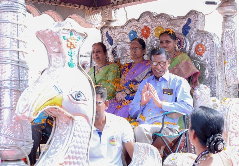ಬೆಳಗಾವಿ: ಪುಷ್ಪಗಳಿಂದ ಸಿಂಗರಿಸಿದ ರಥದಲ್ಲಿ ಆಸೀನರಾಗಿದ್ದ ಗುರುಗಳು… ಬೀದಿ ಬೀದಿಗಳಲ್ಲಿ ಅದ್ದೂರು ಮೆರವಣಿಗೆ… ಶಿಷ್ಯರಿಂದ ಹೂಮಳೆ…ಬಳಿಕ ಅಕ್ಷರ ಕಲಿಸಿದ ಗುರುಗಳಿಗೆ ಕೈತುತ್ತು ತಿನ್ನಿಸಿ ಸಾರ್ಥಕತೆ ಮೆರೆದ ವಿದ್ಯಾರ್ಥಿಗಳು…
