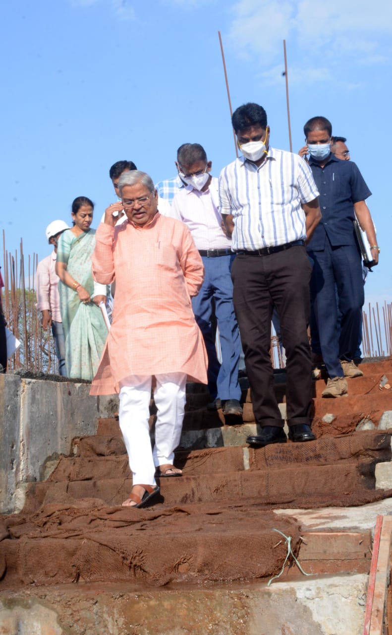 ಟಿಳಕವಾಡಿಯಲ್ಲಿ 43.62 ಕೋಟಿ ರೂಪಾಯಿ ವೆಚ್ಚದಲ್ಲಿ ನಿರ್ಮಿಸಲಾಗುತ್ತಿರುವ ಕಲಾಮಂದಿರ ಕಾಮಗಾರಿಯನ್ನು ವೀಕ್ಷಿಸಿದರು.