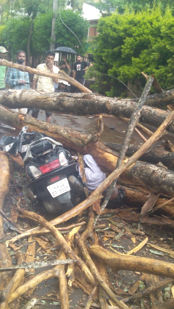 ಬೆಳಗಾವಿಯ ಕಾಳಿ ಅಂಬ್ರಾಯಿ ಪ್ರದೇಶದಲ್ಲಿ ಇಂದು ಸಂಜೆ ಬಿರುಗಾಳಿ ಮಿಶ್ರಿತ ಮಳೆ ಸುರಿಯುತ್ತಿರುವಾಗ ದೊಡ್ಡ ಮರವೊಂದು ಬೈಕ್ ಸವಾರನ ಮೇಲೆ ಬಿದ್ದು ಬೈಕ್ ಸವಾರ ಸ್ಥಳದಲ್ಲೇ ಮೃತಪಟ್ಟಿದ್ದಾನೆ.