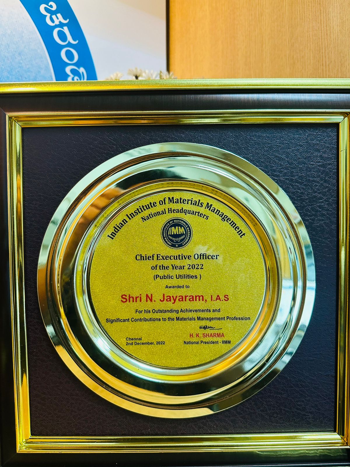 ಇತ್ತೀಚೆಗೆ ಚೆನೈನಲ್ಲಿ ನಡೆದ ಕಾರ್ಯಕ್ರಮದಲ್ಲಿ Indian Institute of Material Management ನ ರಾಷ್ಟ್ರೀಯ ಅಧ್ಯಕ್ಷ ಎಚ್. ಕೆ. ಶರ್ಮ ಈ ಪ್ರಶಸ್ತಿ ನೀಡಿದರು.