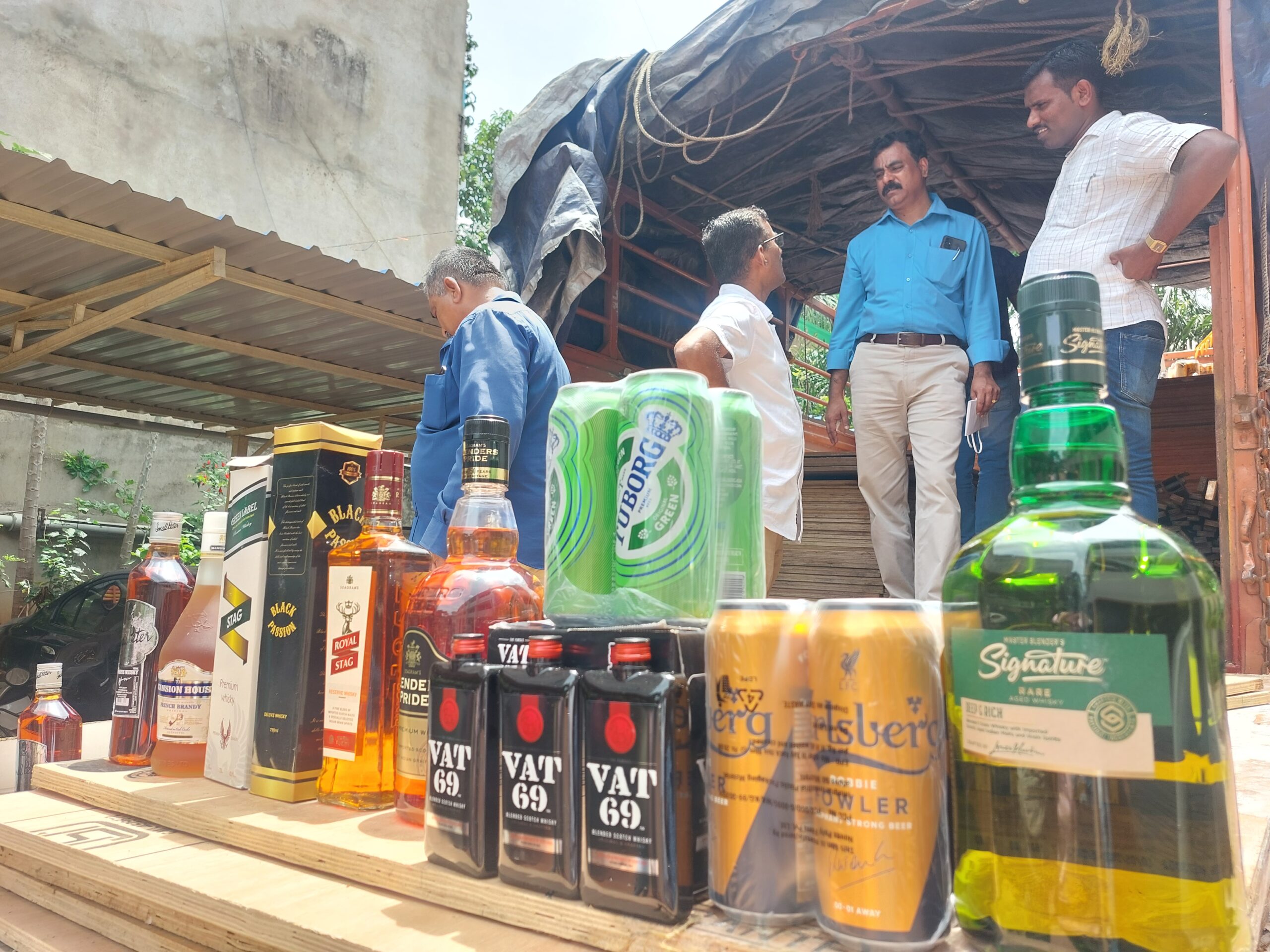 ಲಾರಿಯಲ್ಲಿ ಅತ್ಯಂತ ಬೆಲೆ ಬಾಳುವ,ಸಿಗ್ನೀಚರ್,ಬ್ಲೆಂಡರ್ಸ್ ಫ್ರೈಡ್, ಮ್ಯಾನ್ಸನ್ ಹೌಸ್,ರಾಯಲ್ ಚಾಲೇಂಜ್,ರಾಯಲ್ ಸ್ಟ್ಯಾಗ್,ವ್ಯಾಟ್ 69 ,ಸೇರಿದಂತೆ ವಿವಿಧ ಬ್ರ್ಯಾಂಡ್ ಗಳ ಮದ್ಯದ ಬಾಟಲಿಗಳನ್ನು ಫ್ಲೈವುಡ್ ತುಂಬಿದ ಲಾರಿಯಲ್ಲಿ ಸಾಗಾಣಿಕೆ ಮಾಡಲಾಗುತ್ತಿತ್ತು.