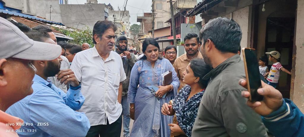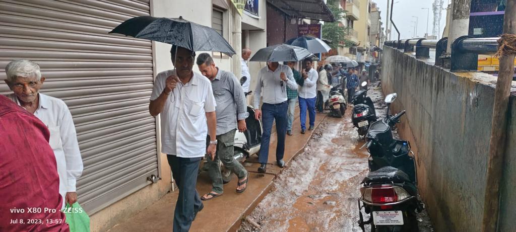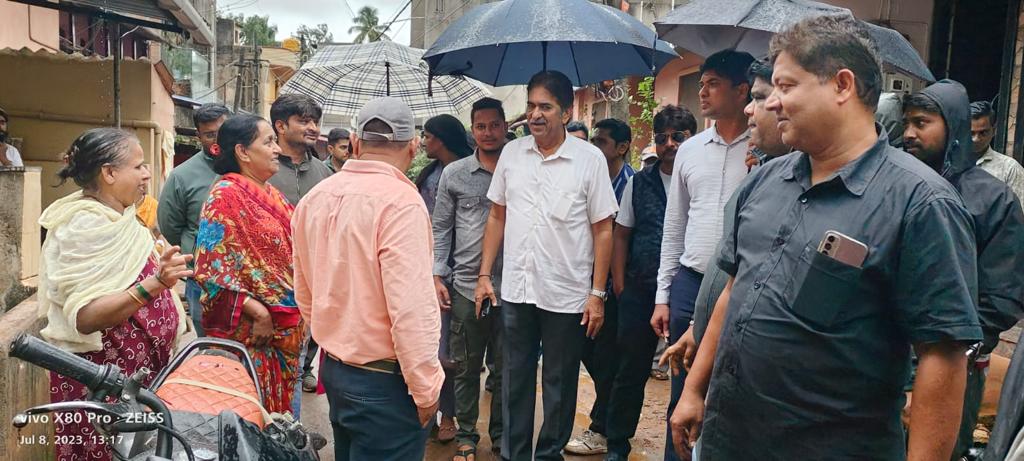 ಬೆಳಗಾವಿ ಮಹಾನಗರ ಪಾಲಿಕೆಯ ಆಯುಕ್ತ ಅಶೋಕ ದುಡಗುಂಟಿ ಅವರ ಜೊತೆ ಜಿಟಿ,ಜಿಟಿ ಮಳೆಯಲ್ಲೂ ಕೈಯಲ್ಲಿ ಛತ್ರಿ ಹಿಡಿದು ನಗರದ ಗಲ್ಲಿ ಗಲ್ಲಿಗಳಲ್ಲಿ ಸುತ್ತಾಡಿ ಸಾರ್ವಜನಿಕರ ಸಮಸ್ಯೆಗಳನ್ನು ಆಲಿಸಿದ್ರು.ಮಳೆ ವಿಪರೀತವಾದಾಗ ಯಾವ ಯಾವ ಪ್ರದೇಶಗಳಲ್ಲಿ ಜನ ಯಾವ ರೀತಿಯ ತೊಂದರೆ ಅನುಭವಿಸುತ್ತಾರೆ.ಅವುಗಳ ನಿವಾರಣೆಗೆ ಏನೆಲ್ಲಾ ಮಾಡಬೇಕಾಗಿದೆ ಎಂದು ಆಯಾ ಪ್ರದೇಶದ ಜನರನ್ನು ಮಾತನಾಡಿಸಿ ಶಾಸಕ ರಾಜು ಸೇಠ ಅವರು ಸಮಸ್ಯೆಗಳನ್ನು ಪಟ್ಟಿ ಮಾಡಿಕೊಂಡರು.